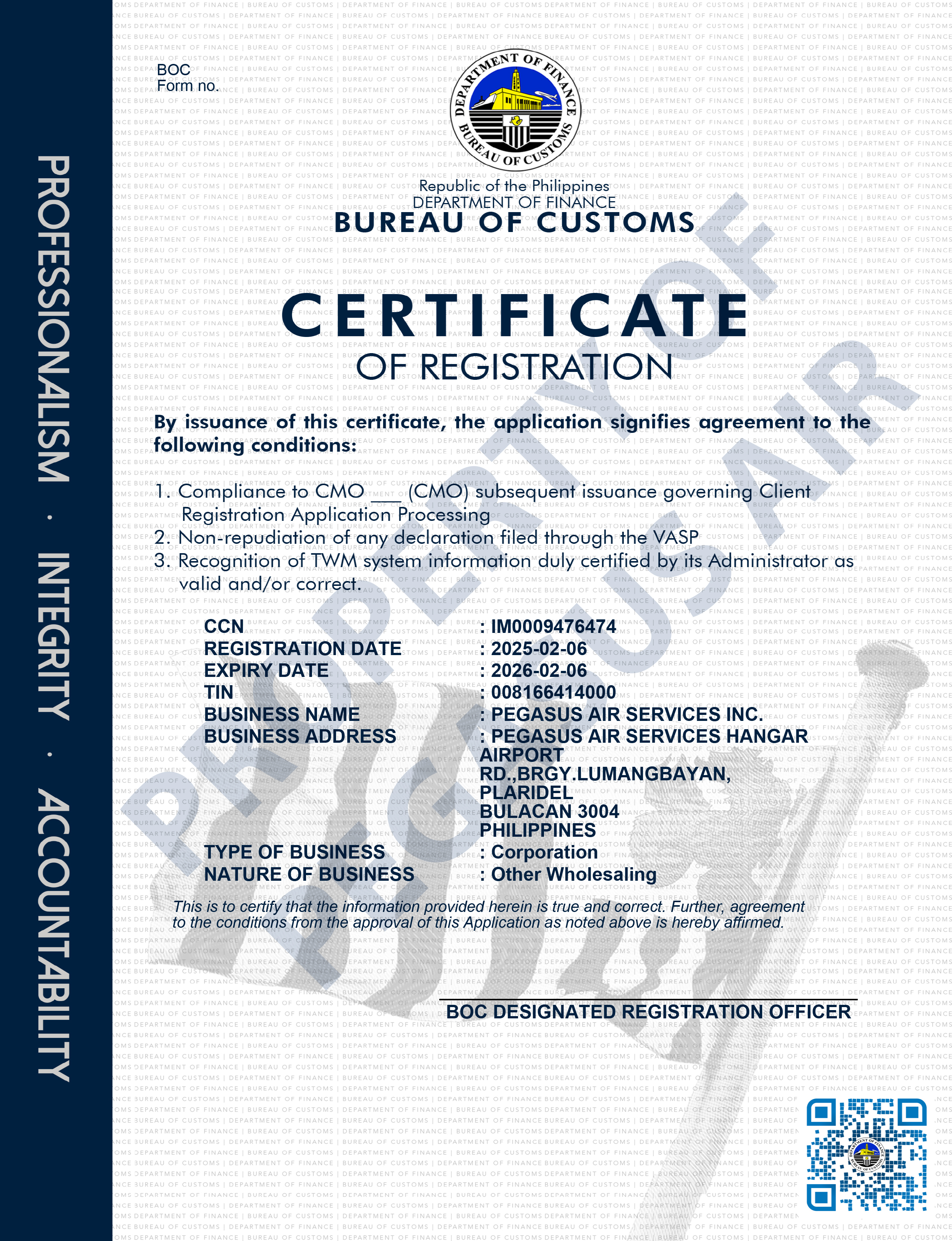 With given years of experience in handling aircraft. Pegasus Air Services Inc. recognizes the importance of aircraft maintenance and has made it a top priority in our operations and is now a Certified CAAP APPROVED MAINTENANCE ORGANIZATION (AMO) and Aircraft Material Distributor in the Philippines aiming to provide top-notch maintenance services and high-quality aviation products.